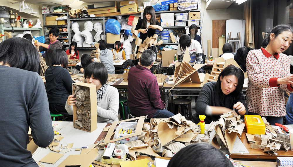 鉛筆の削り方から指導して、口頭では伝わらないところは講師が実際に代わって描いて見せたりします。